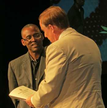 Photo: Senior Pastor at Overcomer Covenant Church, Gordon Banks, listens to King County Councilmember Pete von Reichbauer read the recognition.