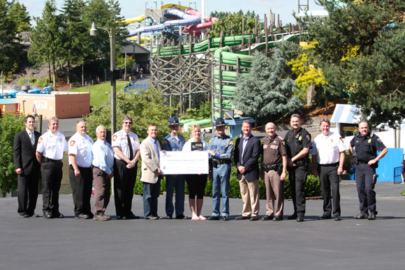 On Wednesday, June 27, 2012, I attended First Responders Day at Wild Waves Theme Park in Federal Way, where first responders received free entry to the park and a free ride on the park’s new Soaring Eagle Zip Line. In attendance was Gina Miller, fiancée of recently fallen Washington State Trooper Tony Radulescu and other local first responders, to accept a special donation from the Wild Waves Theme Park for the Anthony Radulescu Memorial Fund. View more photos