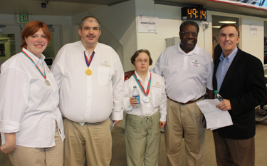 Photo (from left): Heather Friel, Special Olympics Swimming Medalist, Allen Bicknell, Special Olympics Golf Medalist, Angela Martin, Special Olympics Swimming Medalist, Bill Southern, Director of Public Affairs and Development for the Special Olympics, King County Councilmember Pete von Reichbauer)
