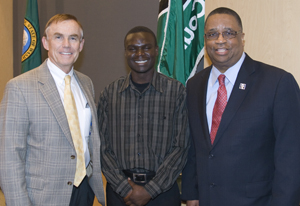 Photo: King County Councilmember Pete von Reichbauer, Federal Way High School graduate and U.S. Air Force Academy Cadet Isaac Wani, and King County Council Chair Larry Gossett.