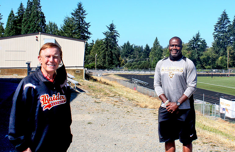 With Federal Way High School Principal Dr. Matt Oberst and Boys Basketball Coach Yattah Reed