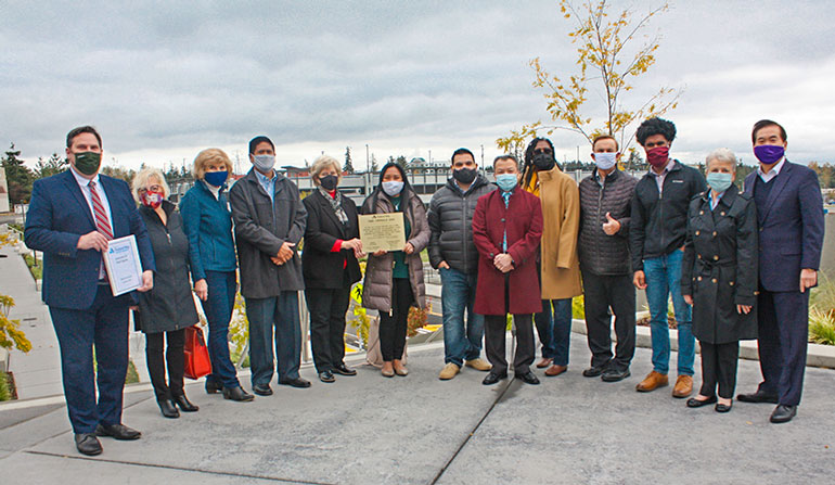 With Federal Way Mayor Jim Ferrell, Sen. Claire Wilson, Mayor Emeritus Jeanne Burbidge, Federal Way Councilmembers Greg Baruso, Linda Kochmar, Leandra Craft, Martin Moore, Hoang Tran and Lydia Assefa-Dawson, Rep. Jesse Johnson, Mayor Emeritus Mary Gates and Mayor Emeritus Mike Park