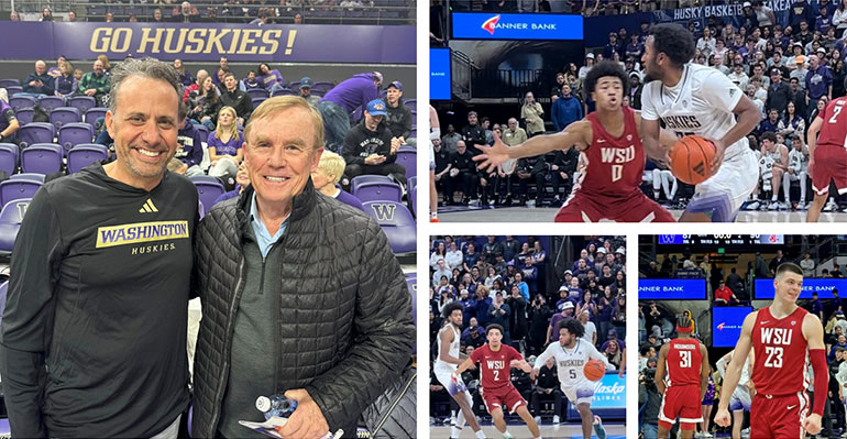 Do we like basketball? Ask the 9,268 fans at the UW vs. WSU Apple Cup! The Cougs won in overtime (90-87), but all the fans won by watching one of the most exciting games in Hec Ed (Hec Edmundson Pavilion) history. New UW Football Coach Jedd Fisch was introduced as well.