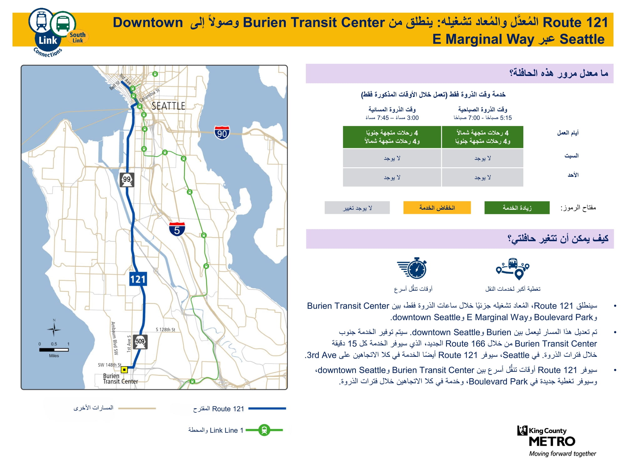 | 121 يخدم Burienووسط مدينة Seattle |