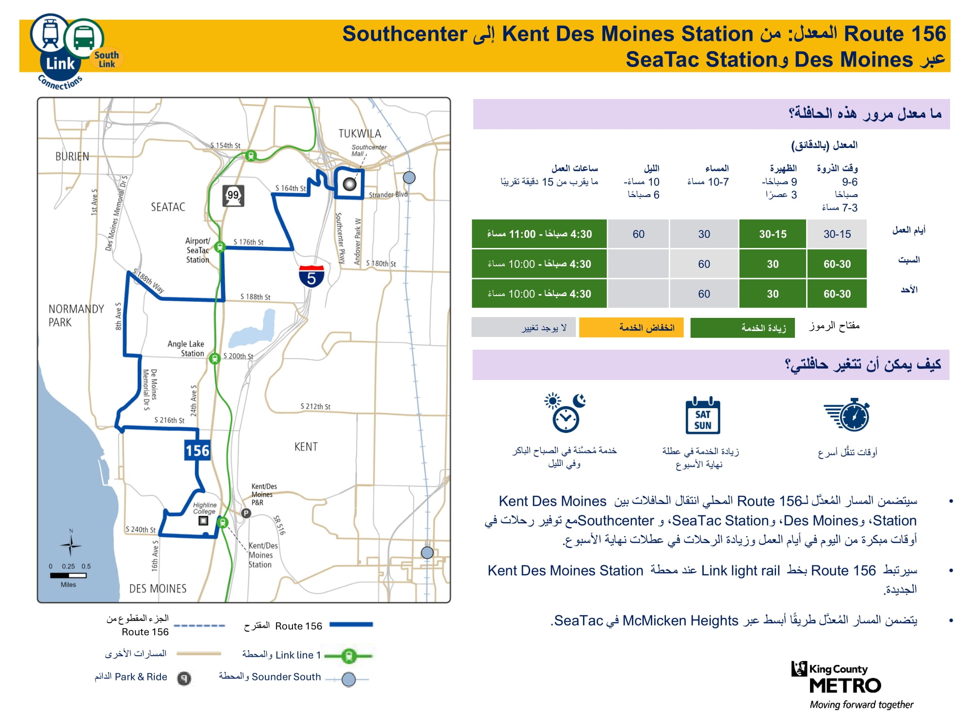 | 156 يخدم Des Moines، وSeaTac، وTukwila |