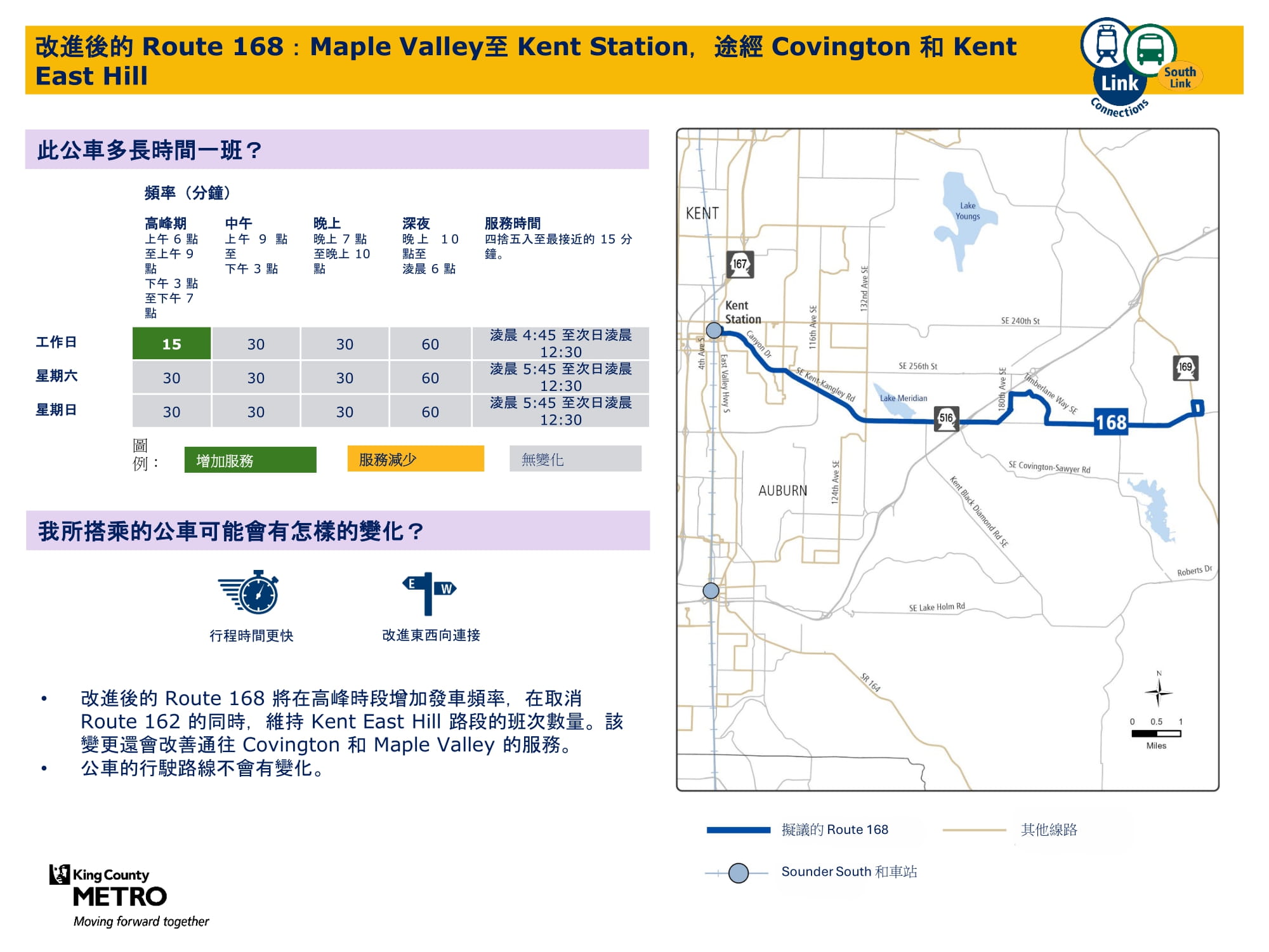 | 168 服務區域:Kent、Covington 和 Maple Valley |