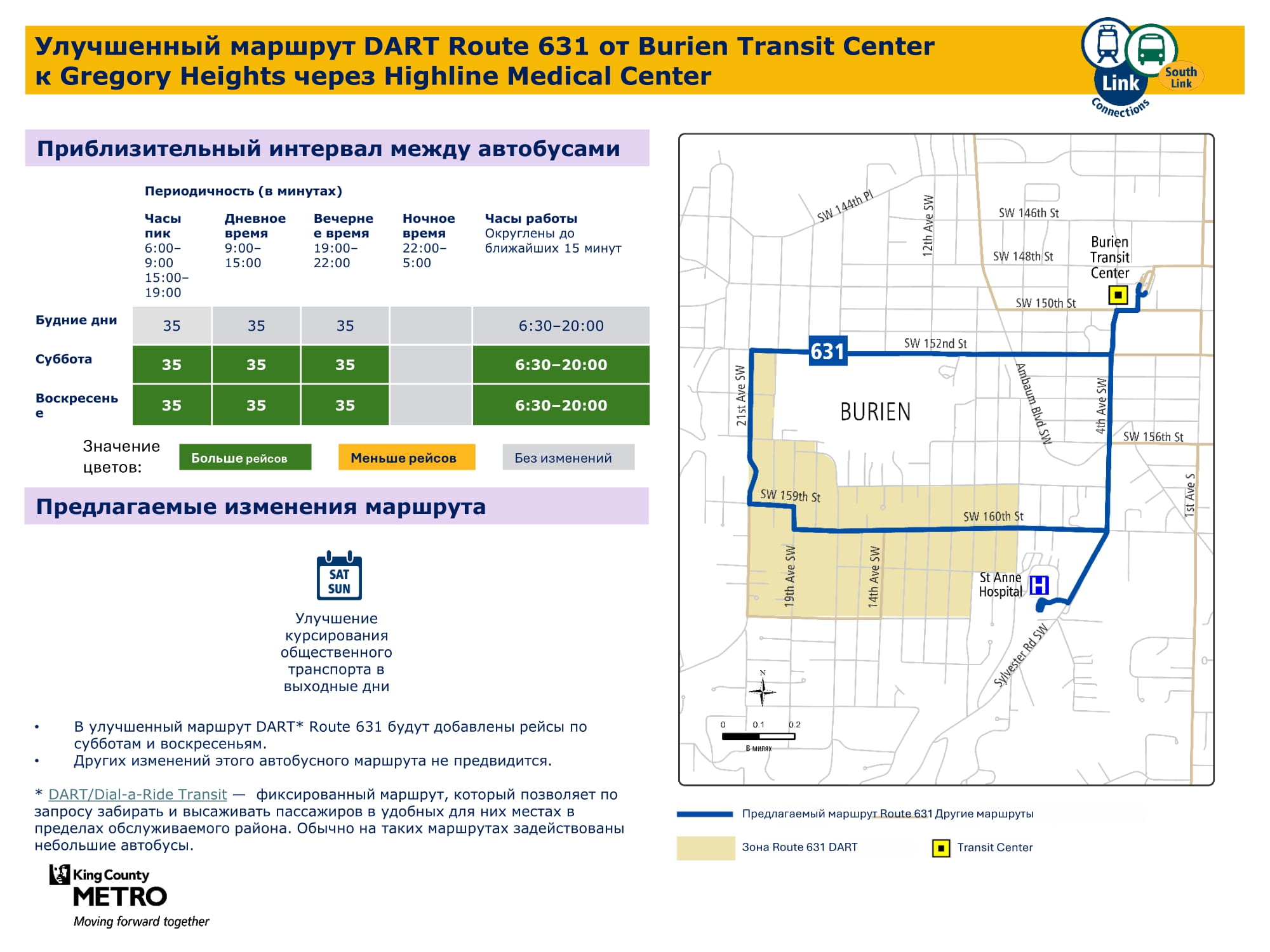 | 121 Обслуживание в городе Burien и центре города Seattle. |