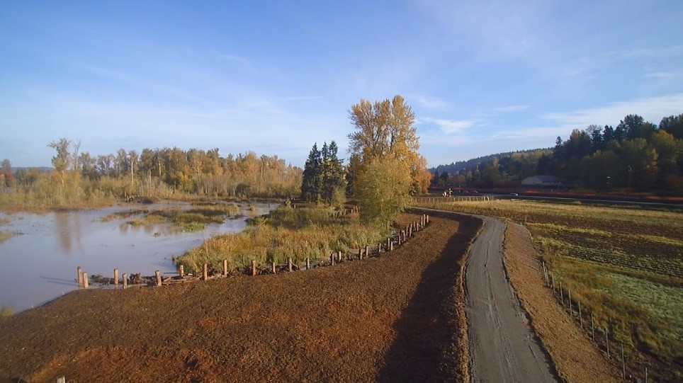 King County, as service provider to the King County Flood Control District, completed the Countyline Levee Setback project in fall 2017. The project name reflects its location on the boundary of King and Pierce counties. This project provided flood risk reduction benefits for more than 200 residences near the White River. It has also restored floodplain habitat for fish and wildlife.
