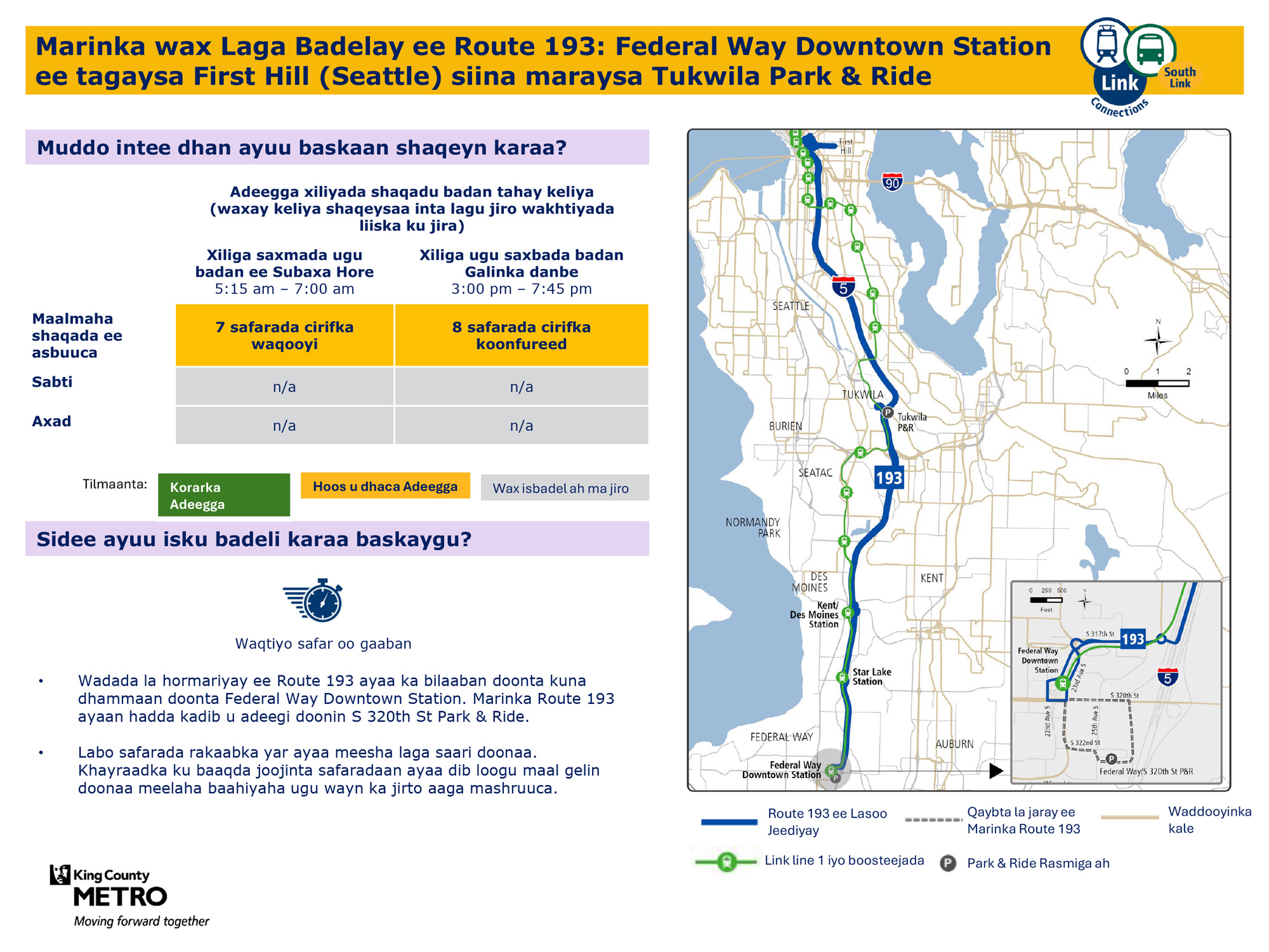 | 193 Waxay u adeegtaa Federal Way, Tukwila, Seattle |